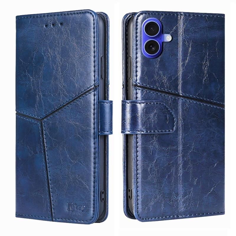 For iPhone 16 Geometric Stitching Leather Phone Case(Blue)