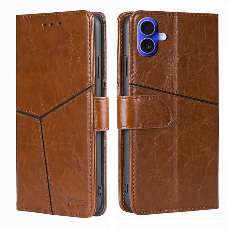 For iPhone 16 Geometric Stitching Leather Phone Case(Light Brown)