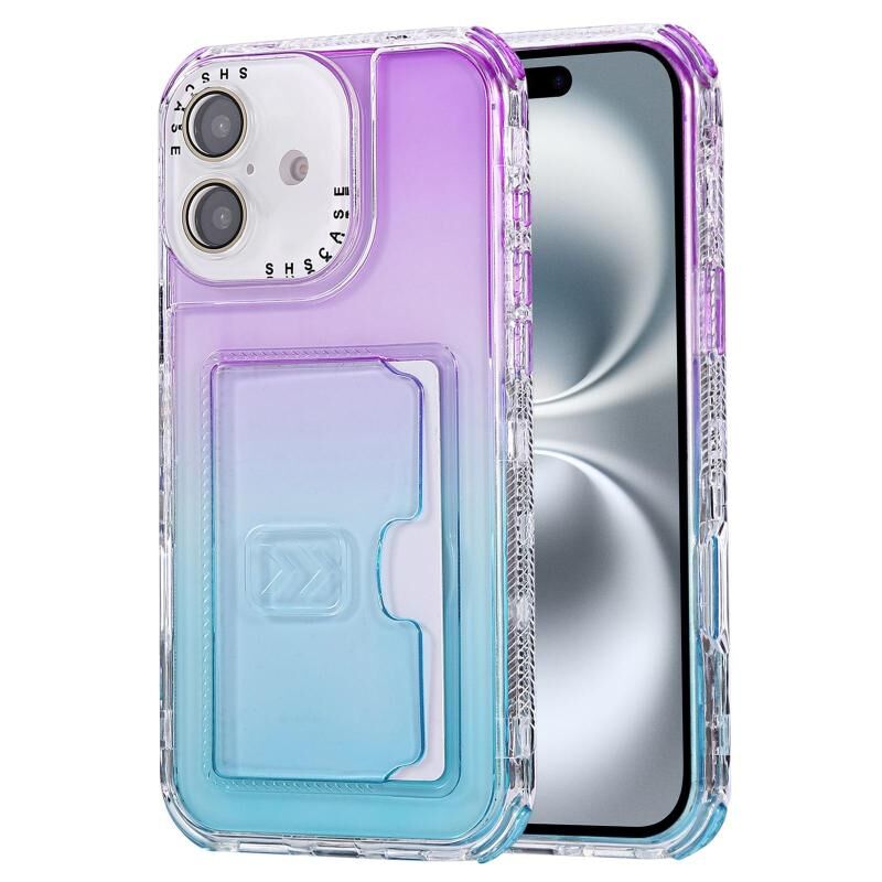 For iPhone 16 Gradient Color TPU + PC Card Slot Full Coverage Phone Case(Purple Sky Blue)