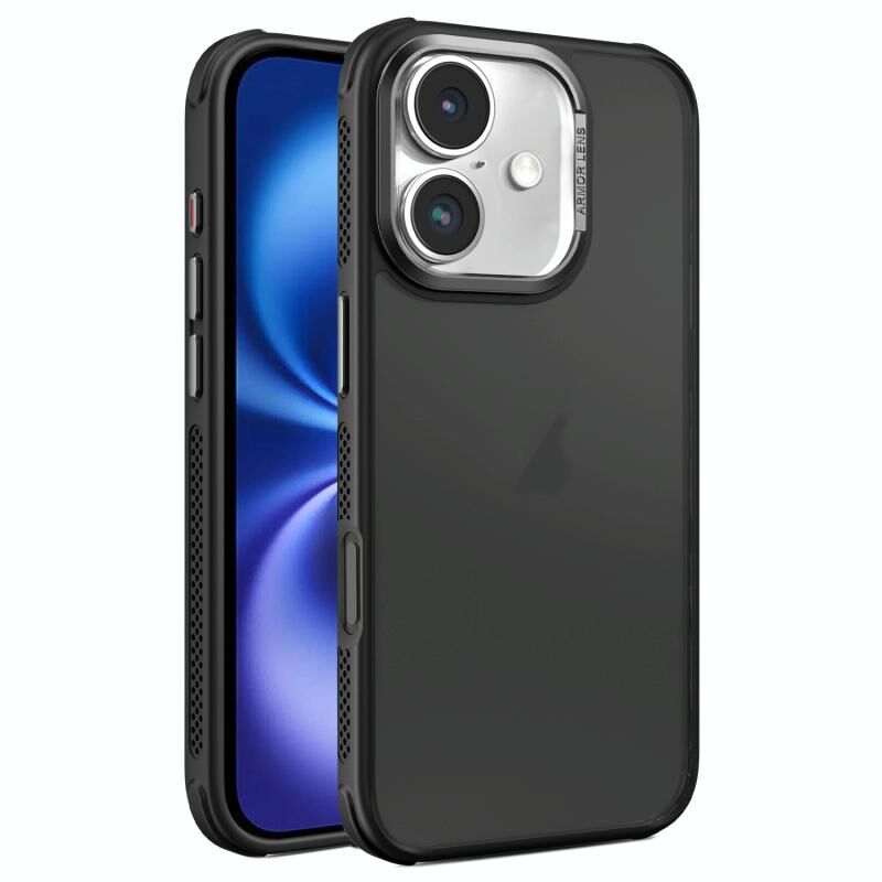Θήκη τηλεφώνου για iPhone 16 με μεταλλική αίσθηση, παγωμένο φινίρισμα, πλευρική ψύξη υλικού και πλαίσιο φακού (Μαύρο)