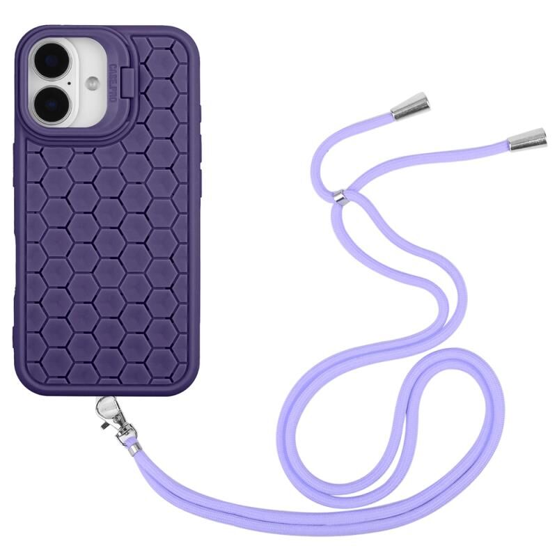 Θήκη τηλεφώνου MagSafe για iPhone 16 με βάση φακού τύπου κυψέλης και κορδόνι (Ροζ)