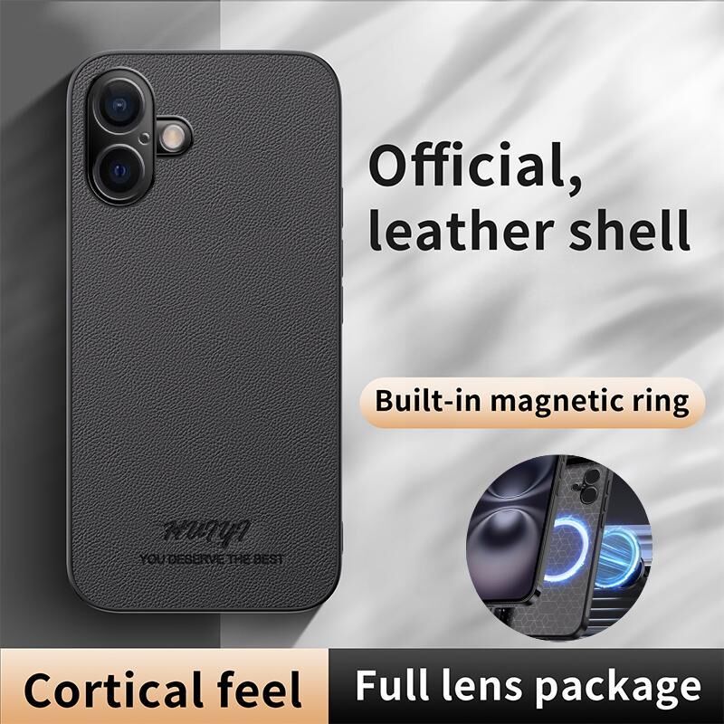 Θήκη τηλεφώνου HUIYI από δέρμα με μαγνητική σύνδεση για iPhone 16 (Μπλε)
