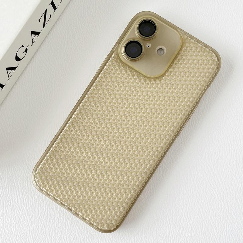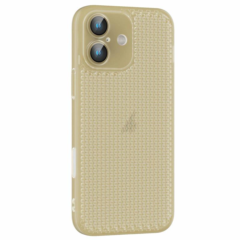 For iPhone 16 Ice Cream Dream Network Cooling PC Phone Case with Lens Film(Transparent Gold)