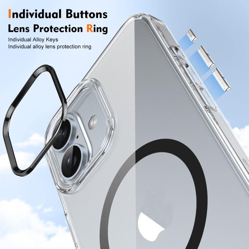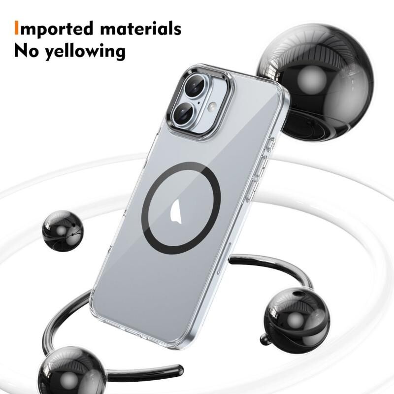 For iPhone 16 Ice Feel HD Transparent MagSafe PC Full Coverage Phone Case(Black)