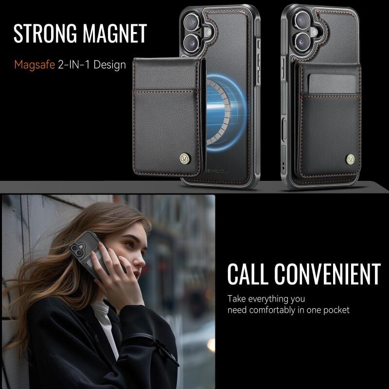 For iPhone 16 JEEHOOD J06 British Style RFID MagSafe Card Bag PU Phone Case(Black) (JEEHOOD)