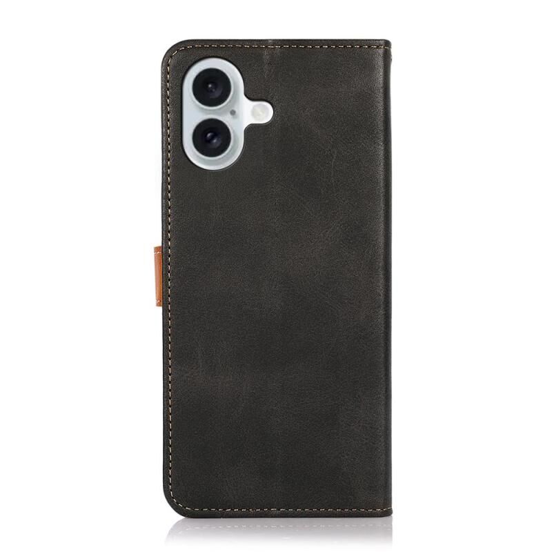 For iPhone 16 KHAZNEH Dual-color Cowhide Texture Flip Leather Phone Case(Black)
