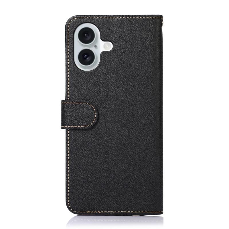 For iPhone 16 KHAZNEH Litchi Texture Leather RFID Phone Case(Black)