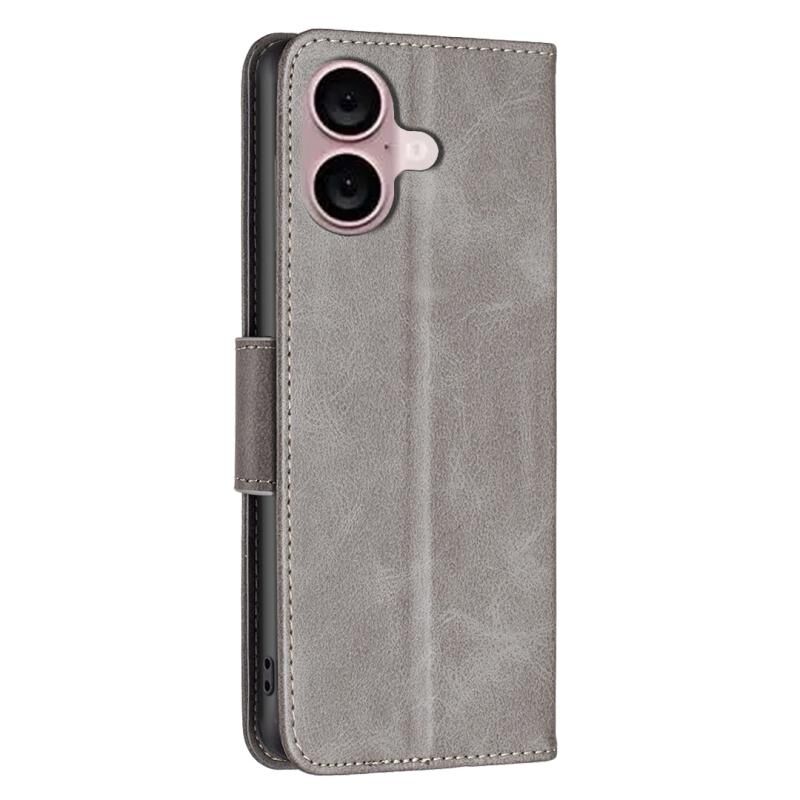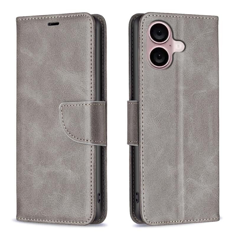 For iPhone 16 Lambskin Texture Pure Color Flip Leather Phone Case(Grey)