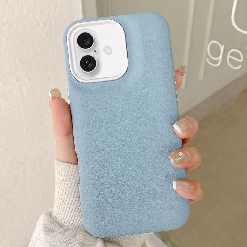 For iPhone 16 Leather Texture Phone Case(Sky Blue)
