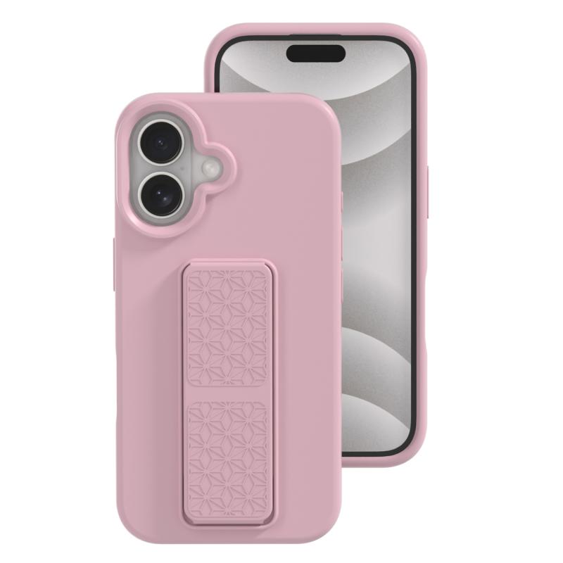 For iPhone 16 Liquid Silicone Holder Phone Case(Sand Pink)