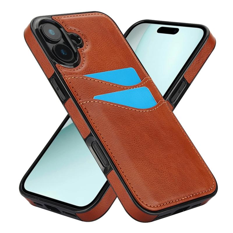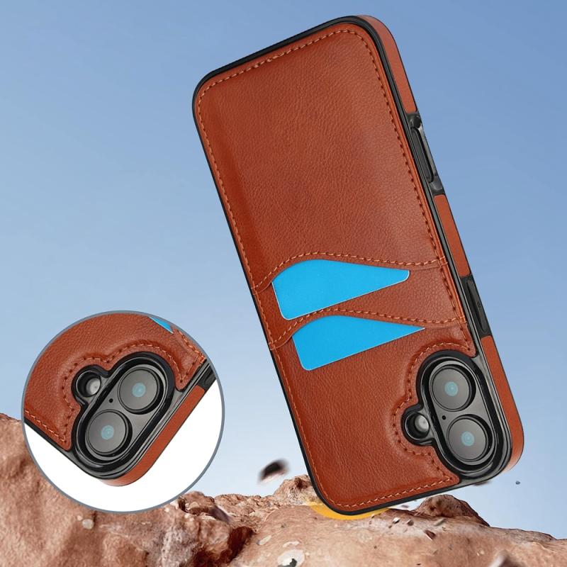 For iPhone 16 Litchi Leather Skin Card Slots Phone Case(Brown)