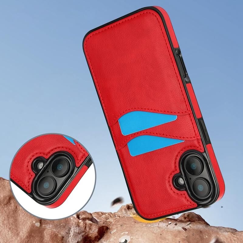 For iPhone 16 Litchi Leather Skin Card Slots Phone Case(Red)