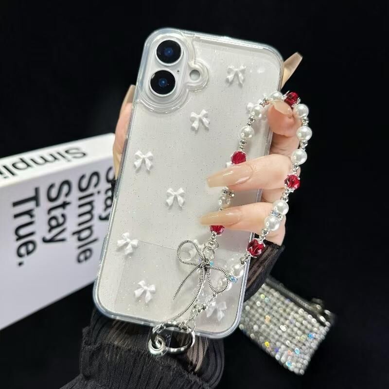 For iPhone 16 Little Fresh Bow Bracelet Chain TPU Phone Case(White)