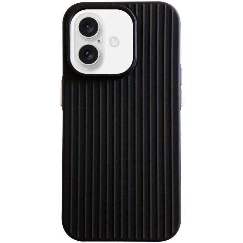 For iPhone 16 Macaroon Tile Stripe TPU Hybrid PC Phone Case(Black)