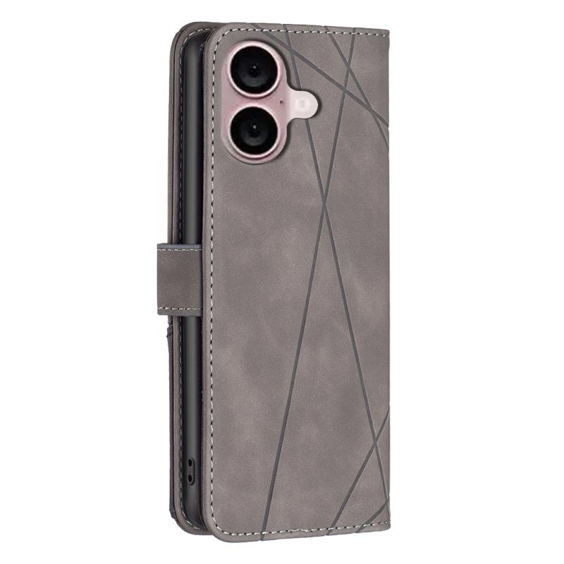 For iPhone 16 Magnetic Buckle Rhombus Texture Leather Phone Case(Grey)