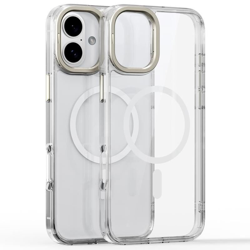 For iPhone 16 Mirror Crystal Clear Lens Holder MagSafe Magnetic Phone Case(Transparent)