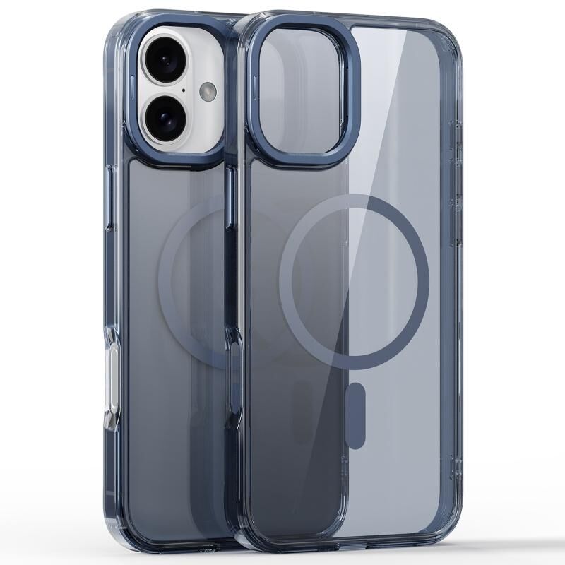 For iPhone 16 Mirror Crystal Clear Lens Holder MagSafe Magnetic Phone Case(Transparent Titanium Blue)