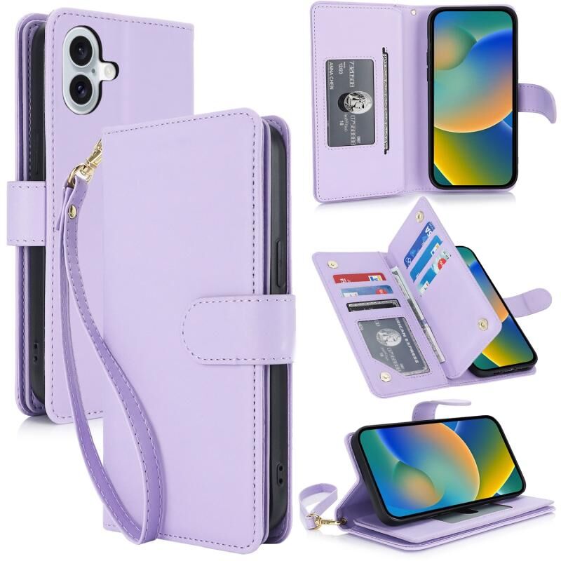 For iPhone 16 Multi-Card Wallet RFID Leather Phone Case(Light Purple)