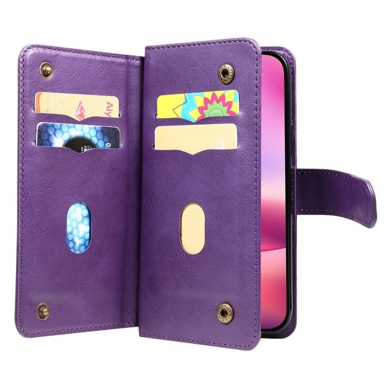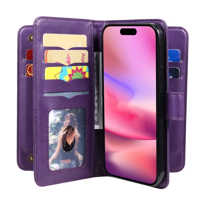 For iPhone 16 Multi-Function Wallet 10 Card Slots Leather Phone Case(Violet)