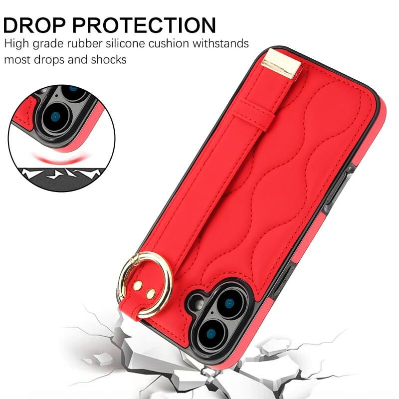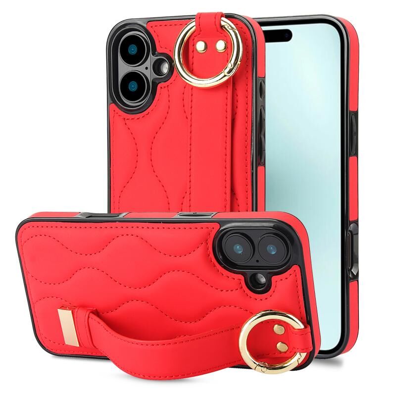 Θήκη τηλεφώνου για iPhone 16 με αντιολισθητική πλήρη κάλυψη, δακτύλιο και λουρί καρπού (Κόκκινο)