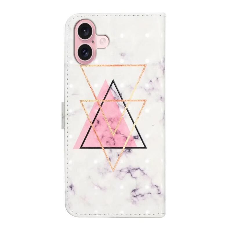 For iPhone 16 Oil Embossed 3D Drawing Leather Phone Case(Triangular Marble)