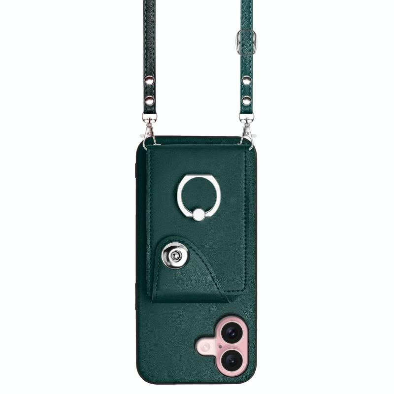 Για το iPhone 16 Οργάνων κάρτα τσάντα τσάντα δαχτυλίδι κάτοχος τηλέφωνο υπόθεση με μακρύ κορδόνι (πράσινο)