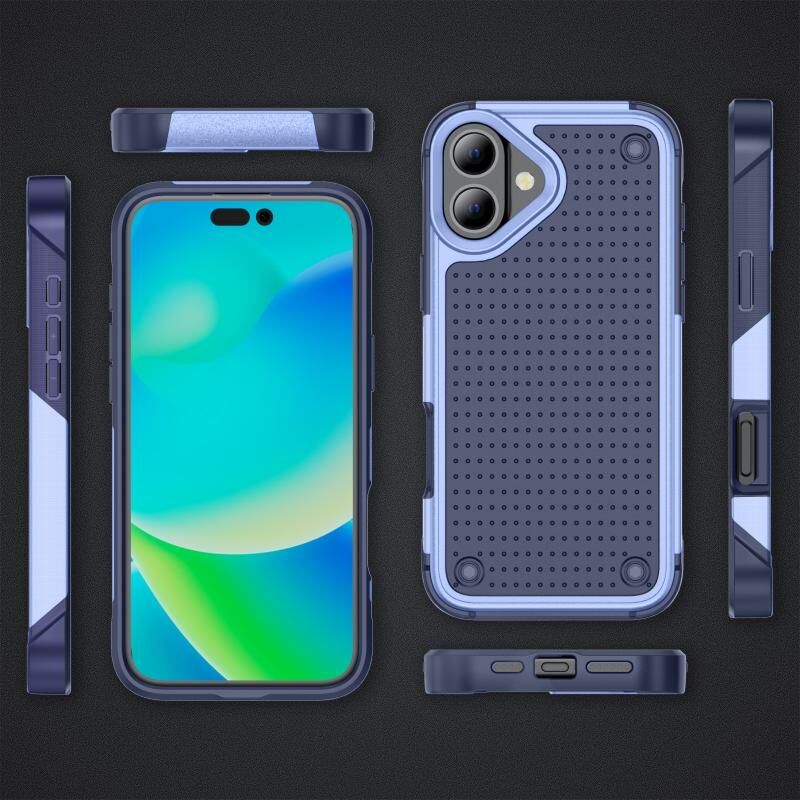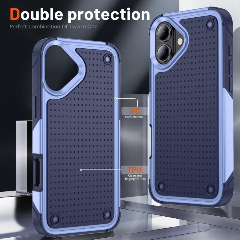 For iPhone 16 PC + TPU Shockproof Protective Phone Case(Light Purple+Sapphire Blue)