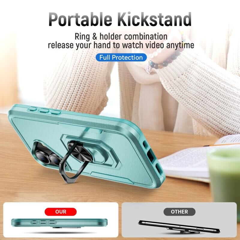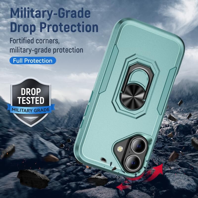 For iPhone 16 Pioneer Armor Heavy Duty PC + TPU Phone Case with Holder(Green)