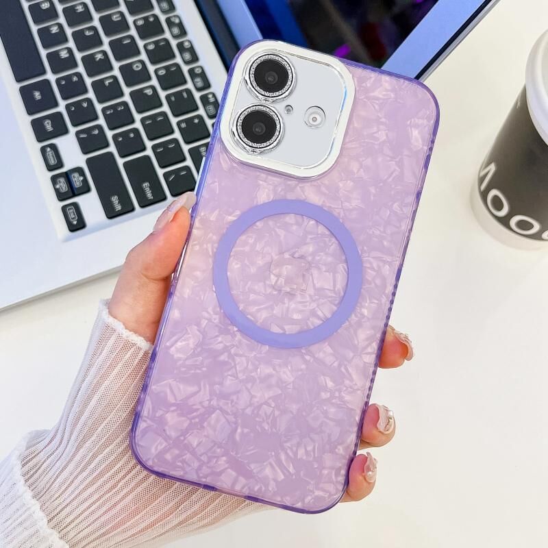 Θήκη τηλεφώνου TPU με επιμετάλλωση, υφή και MagSafe για iPhone 16 με προστατευτική μεμβράνη φακού με γκλίτερ (Λευκά Κύματα Νερού)