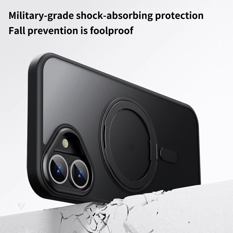 Θήκη κινητού τηλεφώνου με μαγνητική βάση MagSafe, περιστρεφόμενη κατά 360 μοίρες, ματ υφή για iPhone 16 Plus (Γκρι)
