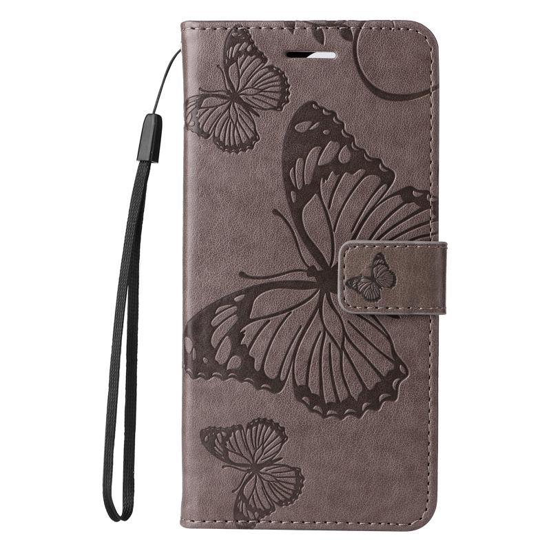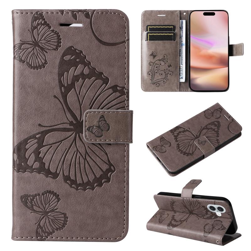 For iPhone 16 Plus 3D Butterfly Embossed Pattern Flip Leather Phone Case(Grey)