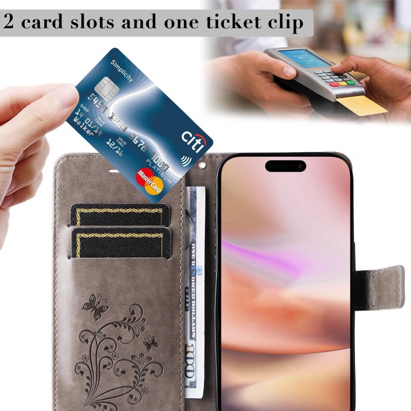 4. Wallet Function: The leather case is equipped with card slots for placing cards and a small amount of cash.