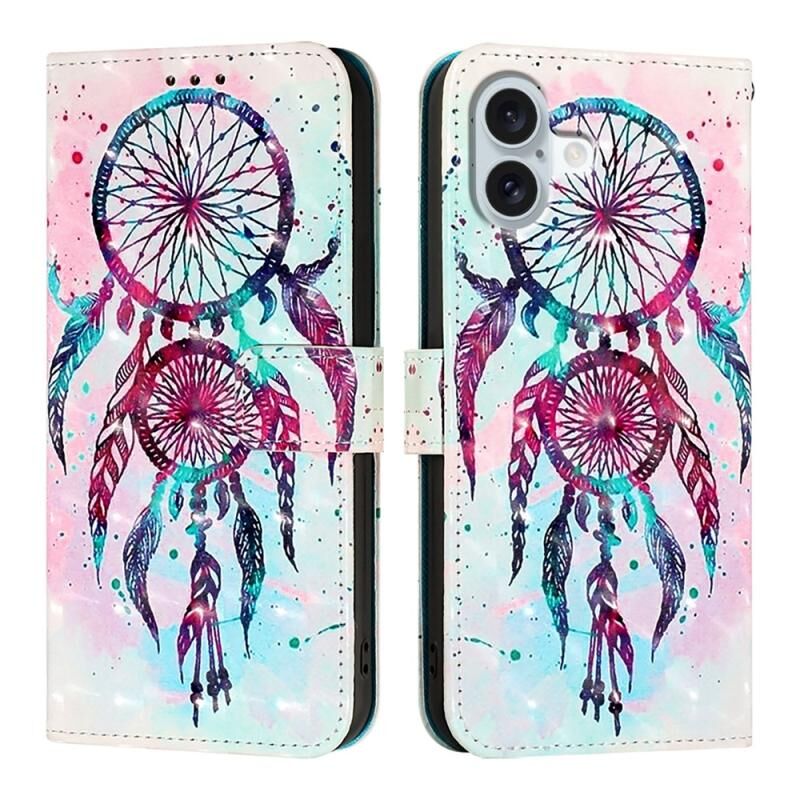 Θήκη τηλεφώνου από δέρμα με οριζόντιο άνοιγμα και τρισδιάστατη ζωγραφική για iPhone 16 Plus (Χρώμα: Αιορούμενα κουδούνια)