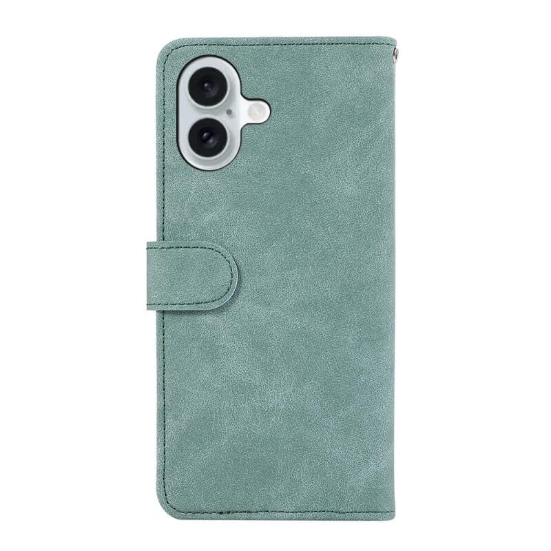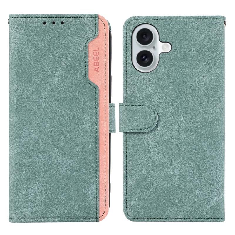Θήκη τηλεφώνου από δέρμα με μαγνητικό κλείσιμο και προστασία RFID για iPhone 16 Plus ABEEL, σε χρώματα Μαύρο-Πράσινο.