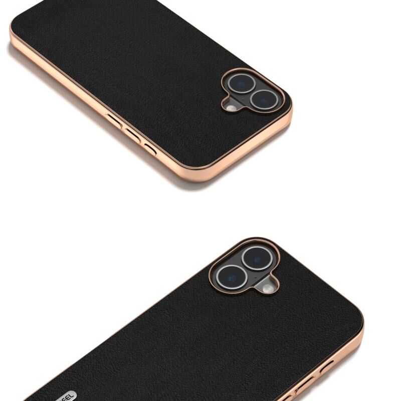Θήκη κινητού τηλεφώνου με επικάλυψη από γνήσιο δέρμα και ηλεκτρολυτικό πλαίσιο για iPhone 16 Plus ABEEL (Μαύρο)