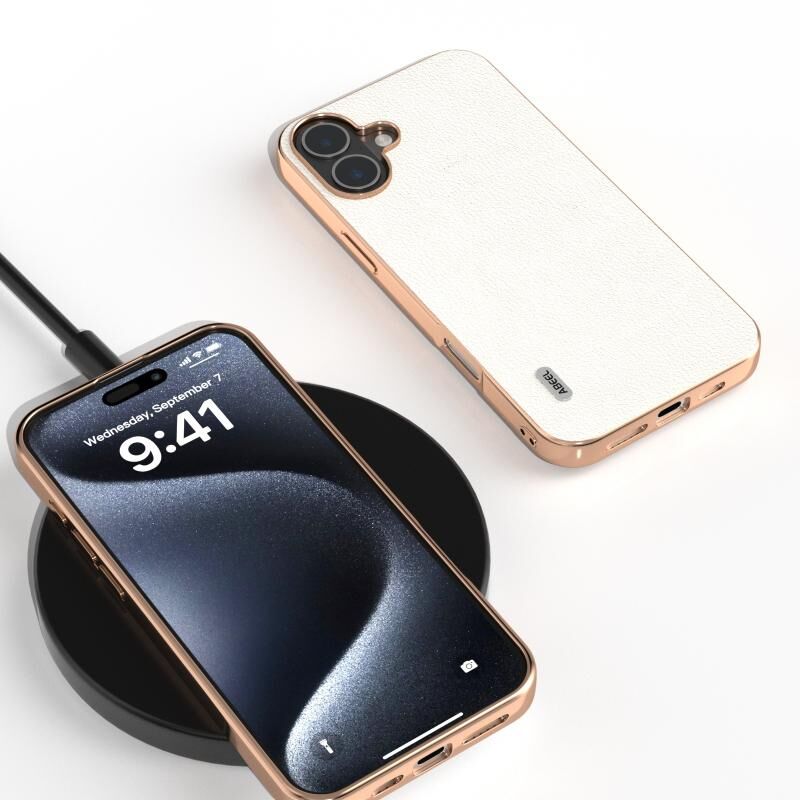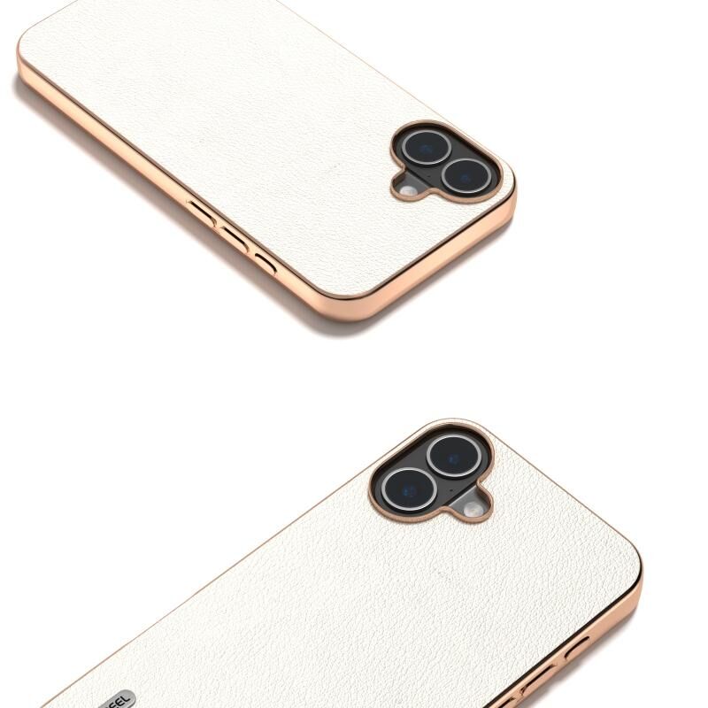 Θήκη κινητού τηλεφώνου με επικάλυψη από γνήσιο δέρμα και ηλεκτρολυτικό πλαίσιο για iPhone 16 Plus ABEEL (Μαύρο)