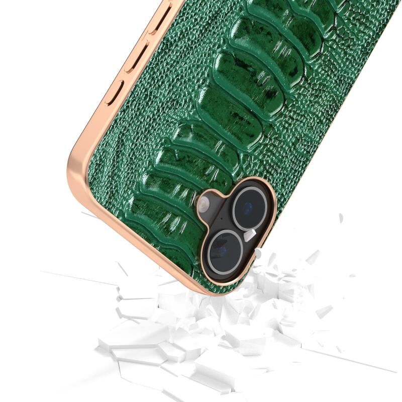 Θήκη τηλεφώνου Weilai Series για iPhone 16 Plus ABEEL με ηλεκτρολυτικό πλαίσιο και γνήσιο δέρμα (πράσινο)