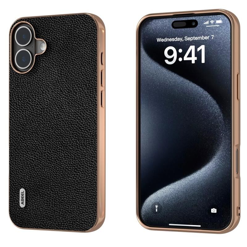 Θήκη τηλεφώνου από γνήσιο δέρμα ABEEL Mino Series Nano Plating για iPhone 16 Plus (Μαύρο)