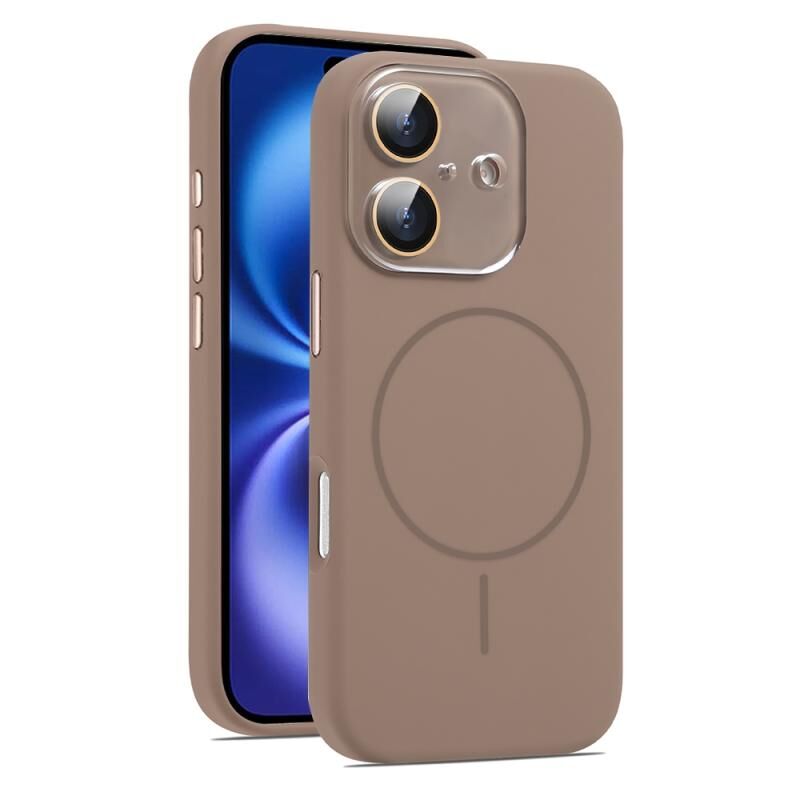 For iPhone 16 Plus AG Fine Hole Liquid Silicone MagSafe Magnetic Phone Case(Brown)