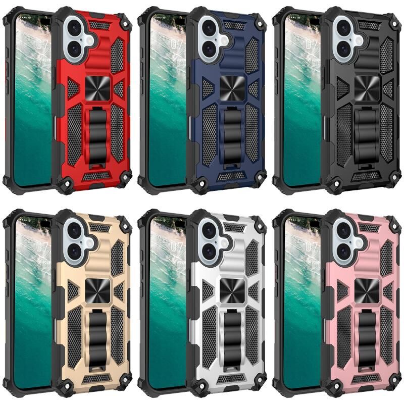 Θήκη τηλεφώνου για iPhone 16 Plus, ανθεκτική σε κρούσεις, υβριδική από TPU και PC, με μαγνητική βάση και στήριξη (Κόκκινη)