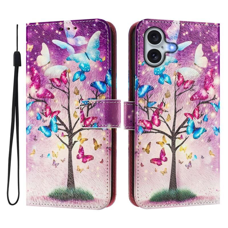 Θήκη τηλεφώνου από δέρμα με σχέδιο ζωγραφικής και χρώματα για iPhone 16 Plus (Κλαδί πεταλούδας)