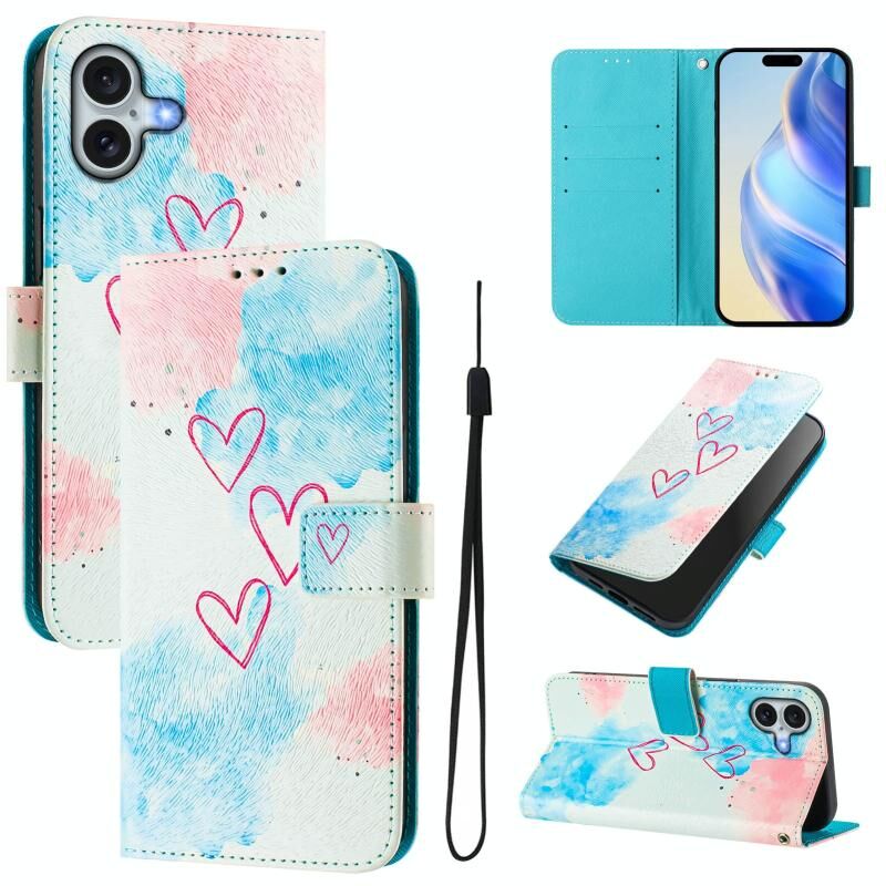 Θήκη τηλεφώνου από δέρμα με σχέδιο ζωγραφικής και χρώματα για iPhone 16 Plus (ΑΓΑΠΆΜΕ ΜΑΣ)