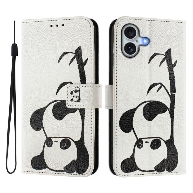 For iPhone 16 Plus Art Colored Drawing Pattern Leather Phone Case(Panda)