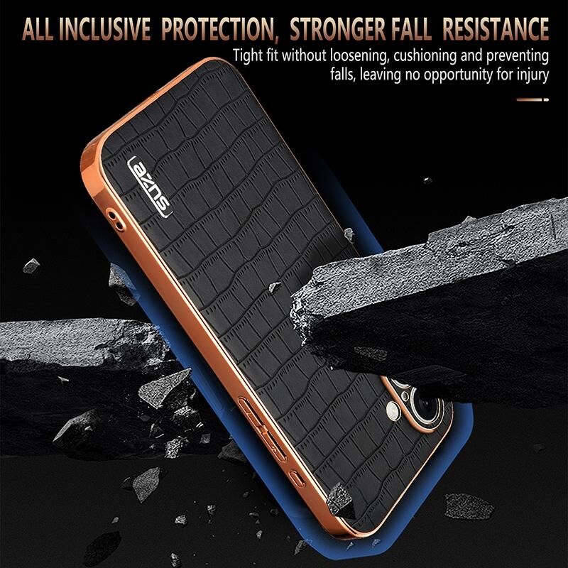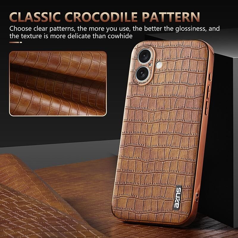 Θήκη κινητού τηλεφώνου πλήρους κάλυψης με ηλεκτρολυτικό πλαίσιο και υφή κροκόδειλου για iPhone 16 Plus AZNS (Μαύρο) (Μαύρο)