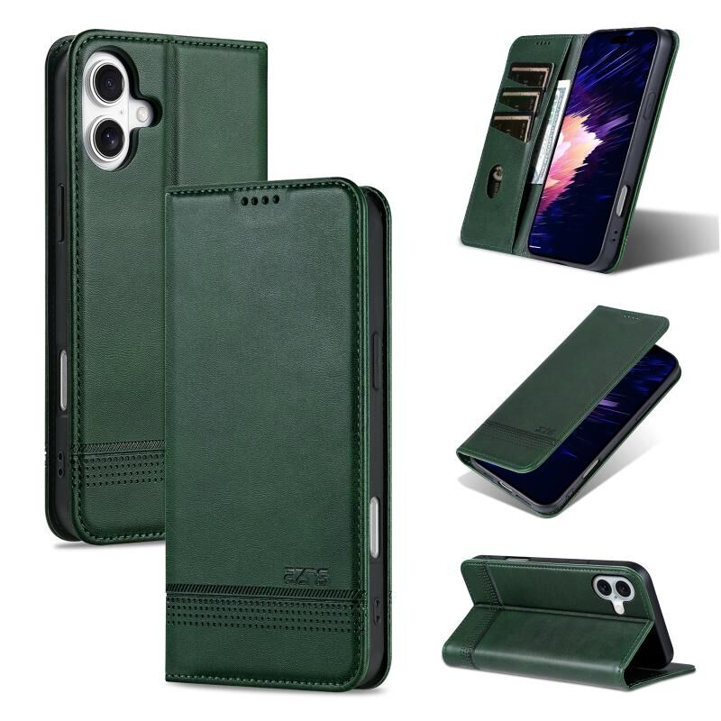 For iPhone 16 Plus AZNS Magnetic Calf Texture Flip Leather Phone Case(Dark Green) (AZNS)