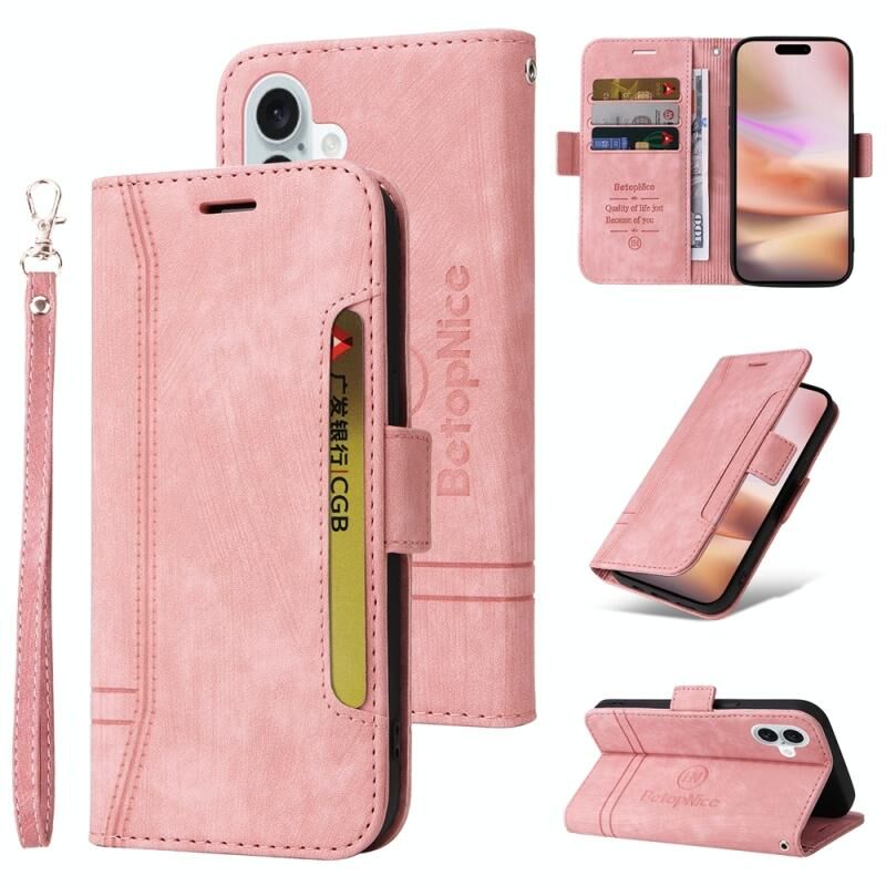 Για iPhone 16 Plus BETOPNICE Δερμάτινη θήκη τηλεφώνου με αγκράφα διπλής όψης (ροζ) (BETOPNICE)