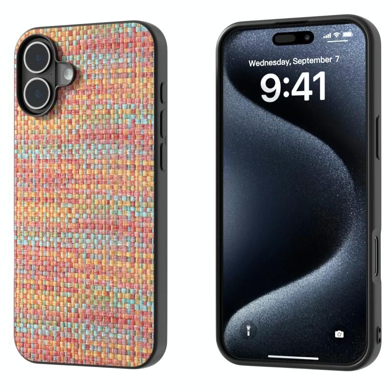 For iPhone 16 Plus Black Frame Color Lattice Texture PU Phone Case(Tangerine)