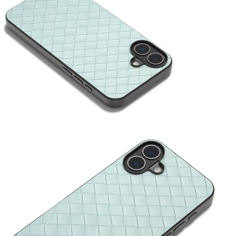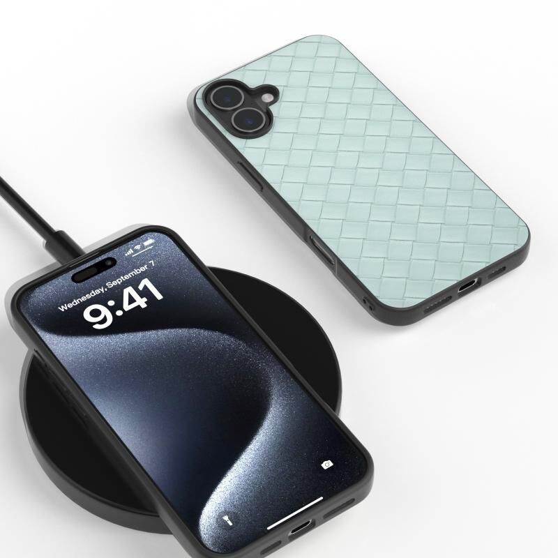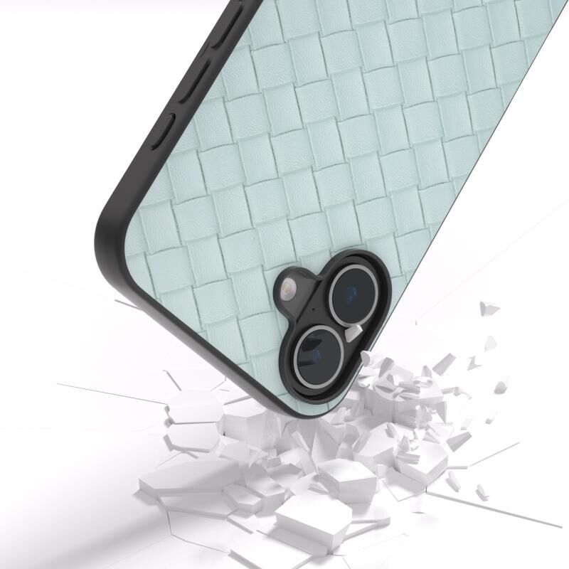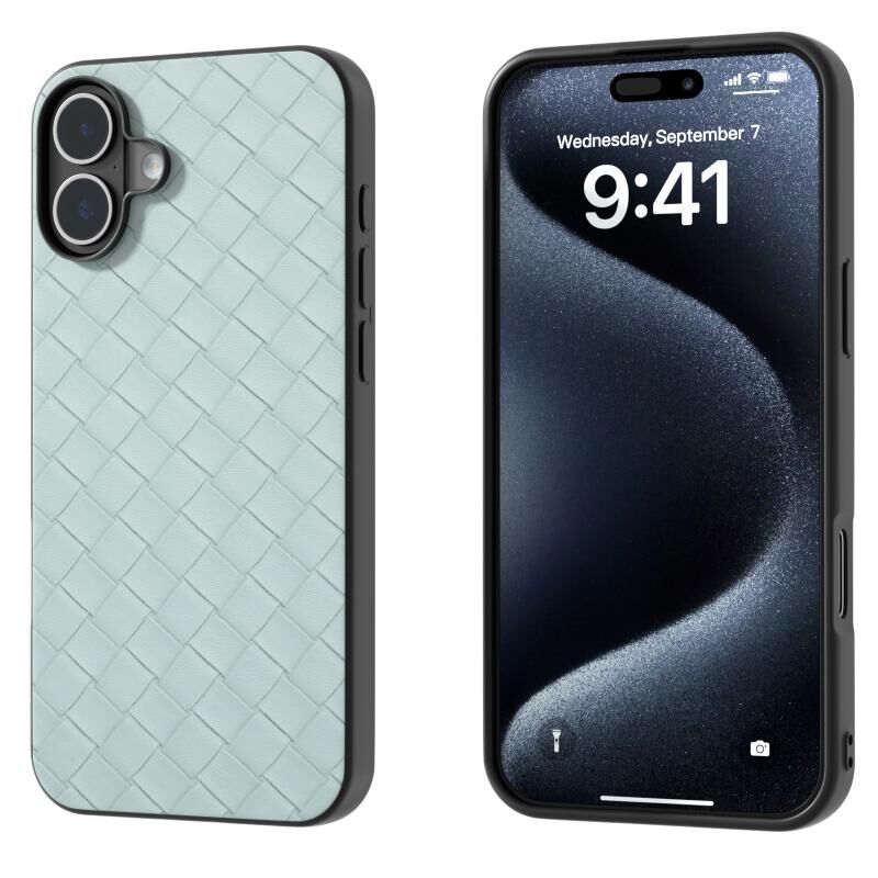 Θήκη τηλεφώνου για iPhone 16 Plus Μαύρο πλαίσιο, Υφή υφαντού PU (Ανοιχτό πράσινο)