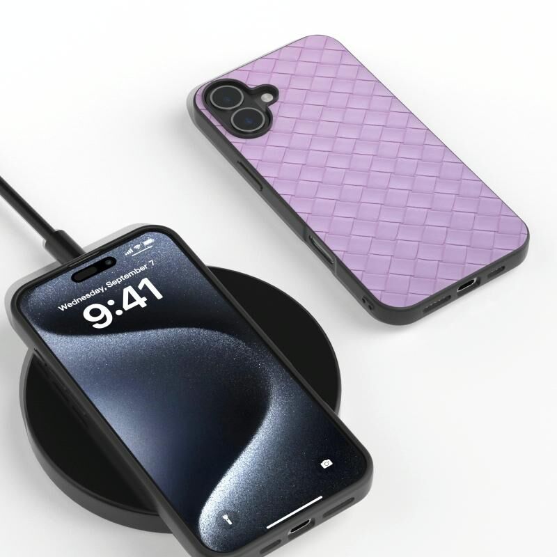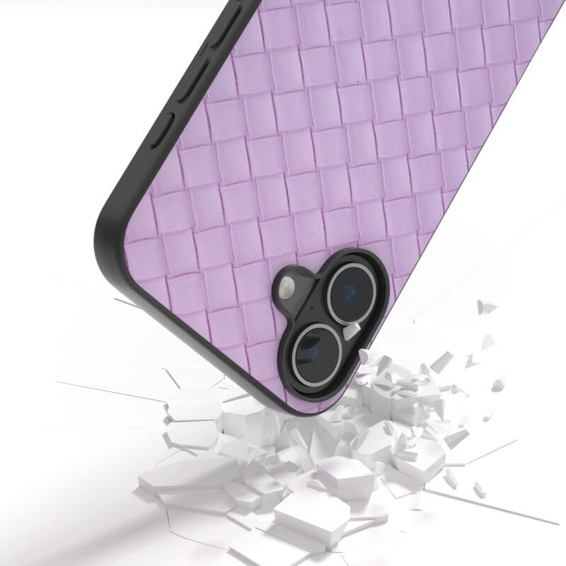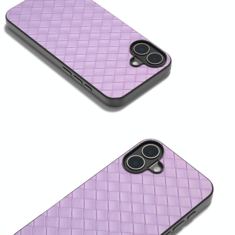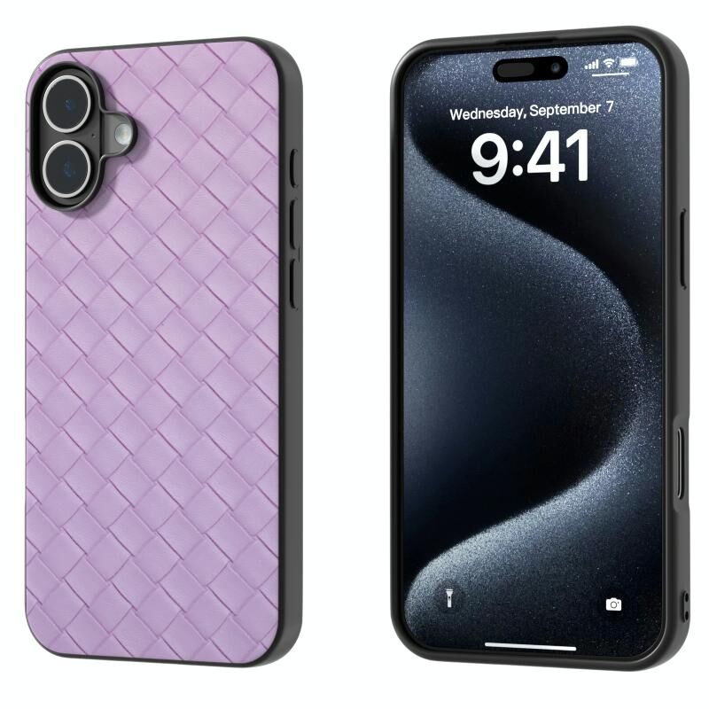 Θήκη τηλεφώνου για iPhone 16 Plus Μαύρο πλαίσιο, Υφή υφαντού PU (Μωβ)