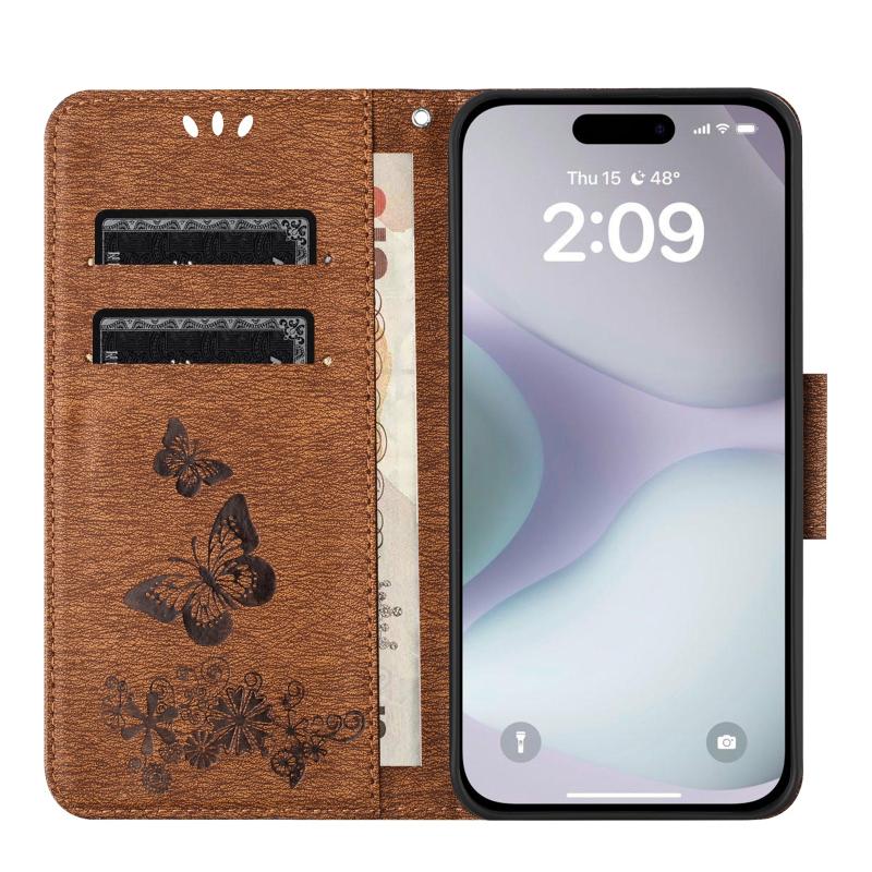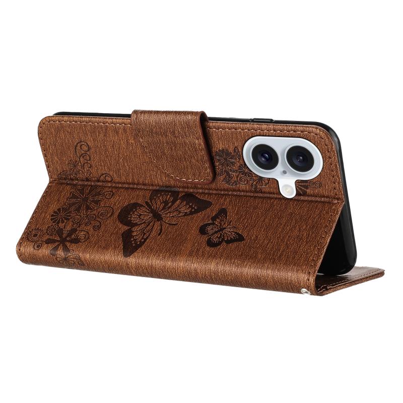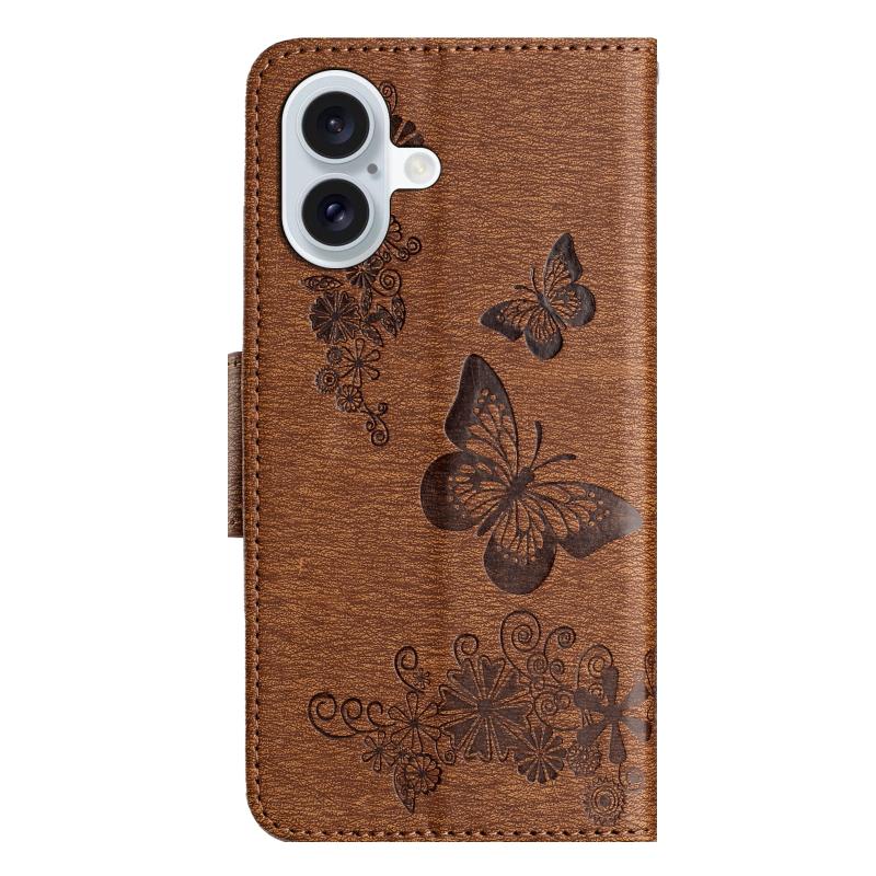 For iPhone 16 Plus Butterfly Embossed Flip Leather Phone Case(Brown)